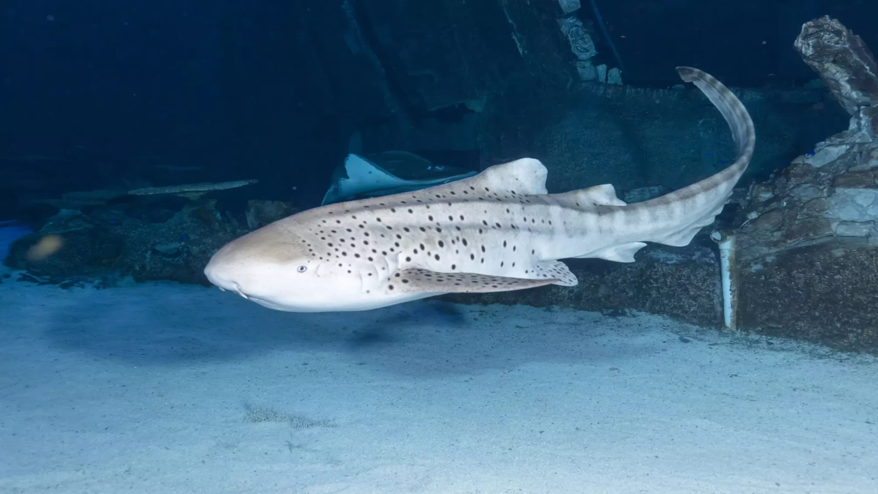 Visitors move through a sequence of themed galleries that gradually transition from traditional aquarium displays into large-scale tanks and underwater tunnels. The most memorable sections place guests beneath swimming sharks and rays, with clear acrylic walls that create a full surround effect.